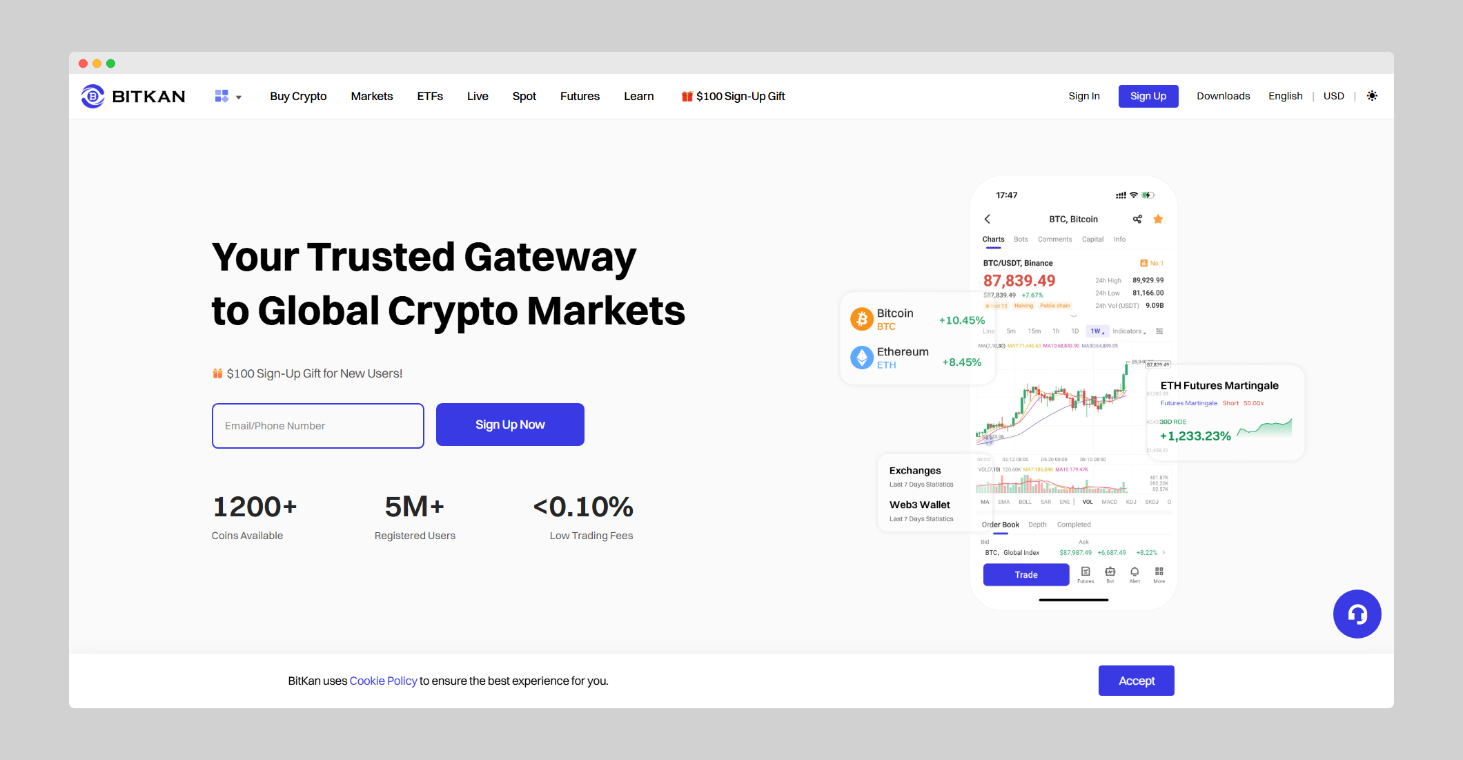 币看BitKan是加密货币一站式投资服务平台,集交易(现货、合约、策略、理财)、行情、社区、资讯、钱包等功能为一体。 目前支持1200+币种的交易,平台交易手续费更低,交易深度更好,业内独创智能聚合交易,仅需一个币看账户,即可轻松交易全球数字资产。