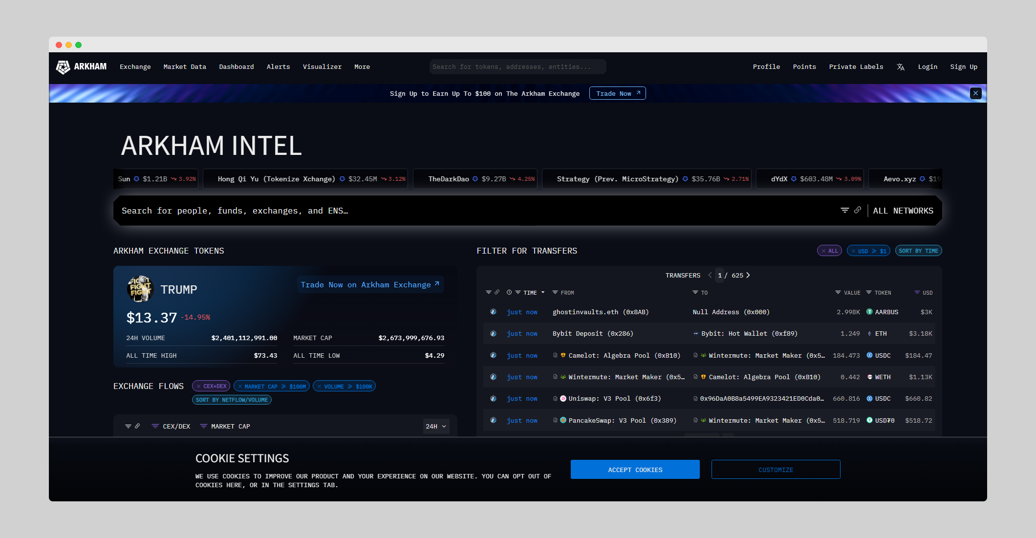 Arkham 是一个加密货币分析平台和数据跟踪仪表板,旨在轻松监控各种区块链实体的链上活动,提供深入的市场分析、交易数据、以及对加密货币项目的全面审查。