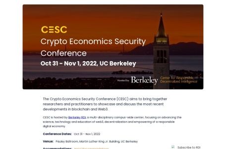 CESC(加密经济安全会议)是一个专注于区块链技术的行业峰会,由Dekrypt Capital、Noris与加州大学伯克利分校共同主办。该峰会的核心目标是探讨区块链协议的经济安全问题,包括博弈论、激励设计、机制设计、市场设计等与加密经济学安全相关的主题。CESC致力于将研究人员和从业者聚集在一起,构建一个跨学科的交流中心,展示和讨论区块链和Web3的最新发展。
