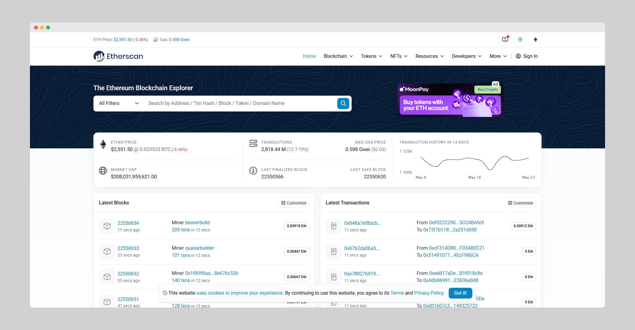 Etherscan 是以太坊的区块浏览器和分析平台。 它于2015 年建成并启动,是围绕以太坊及其社区构建的最早和运行时间最长的独立项目之一,其使命是提供对区块链数据的公平访问。 Etherscan 还在构建BscScan、PolygonScan、FtmScan、ArbiScan 等。