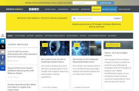 FinTech Weekly 出版关于金融技术和金融的新闻和文章,提供金融领域的新闻,播客,事件的移动解决方案。