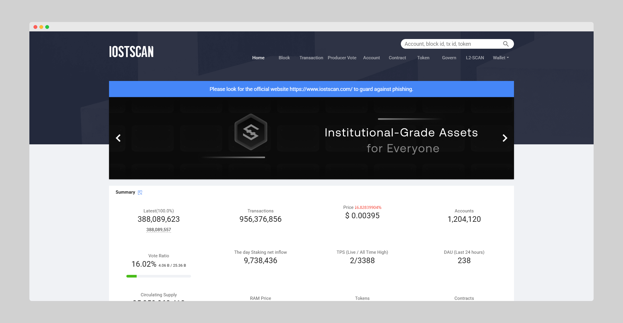 IOSTABC 是 IOST 功能最齐全的区块浏览器,涵盖区块数据查询、投票、交易、买卖 RAM、创建账户、节点注册注销等功能