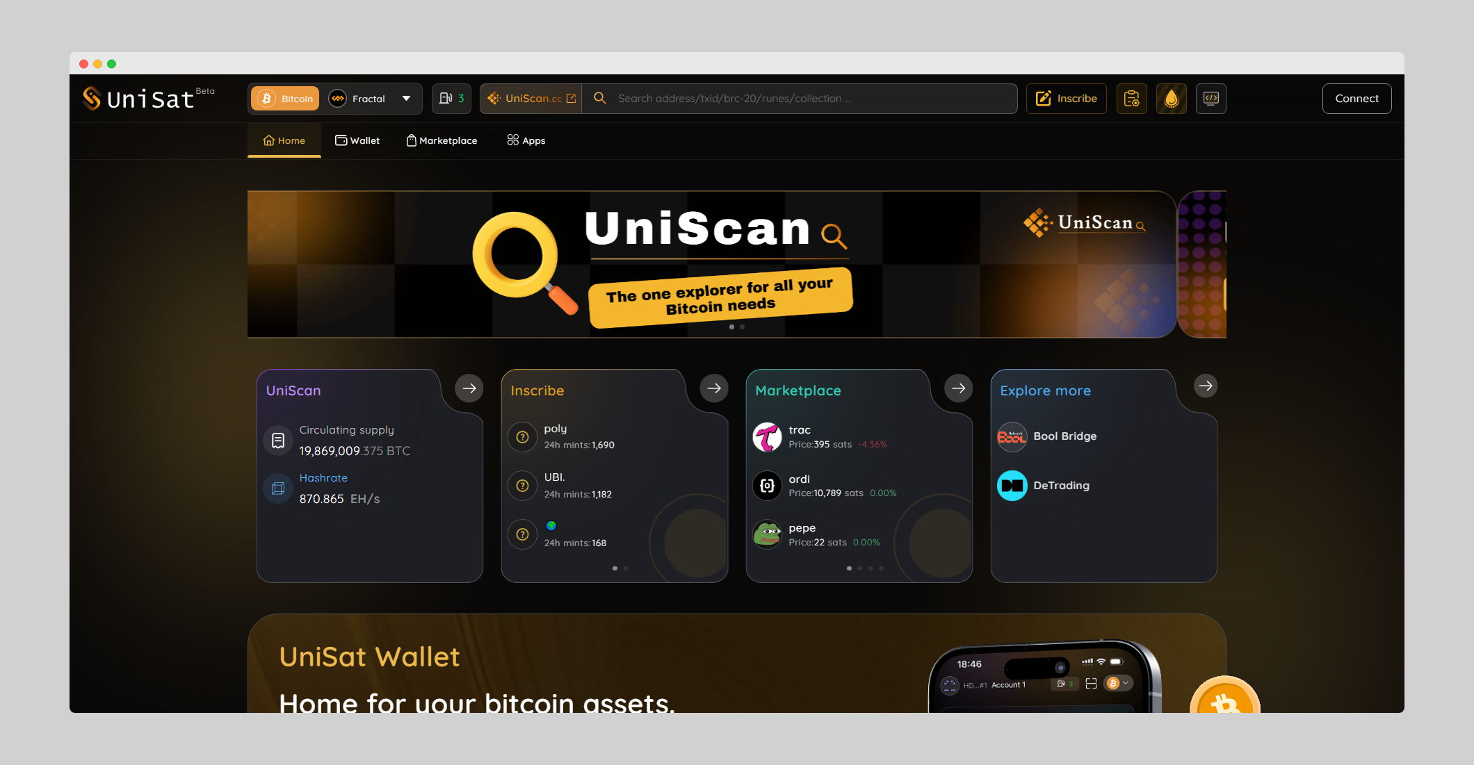 支持多种资产:除了比特币,Unisat钱包还支持多种区块链资产,帮助用户优化投资。