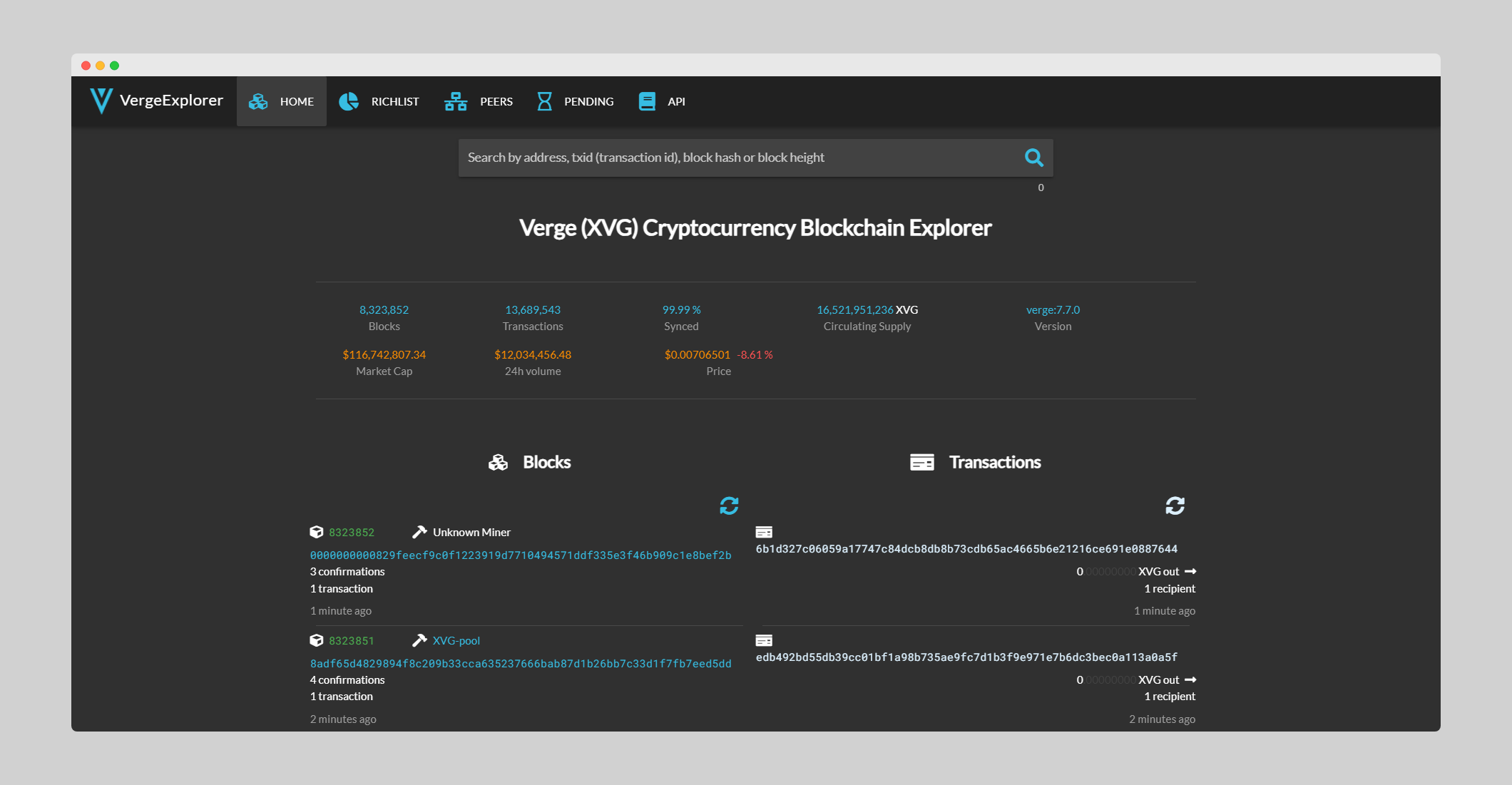 XVG区块浏览器,可以搜索出交易地址、交易哈希、时间戳、区块大小